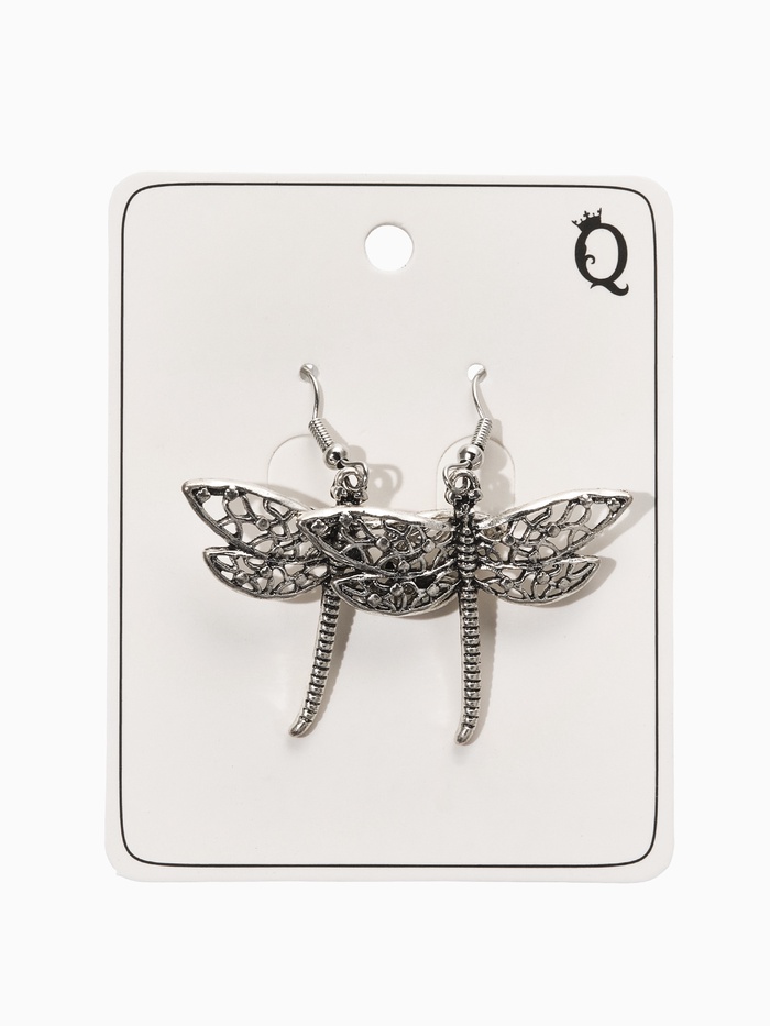 Серьги метал "Аутентичность" стрекоза, цвет чернёное серебро