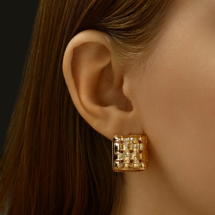 Серьги металл «Аккорд» плетение, квадрат, цвет золото