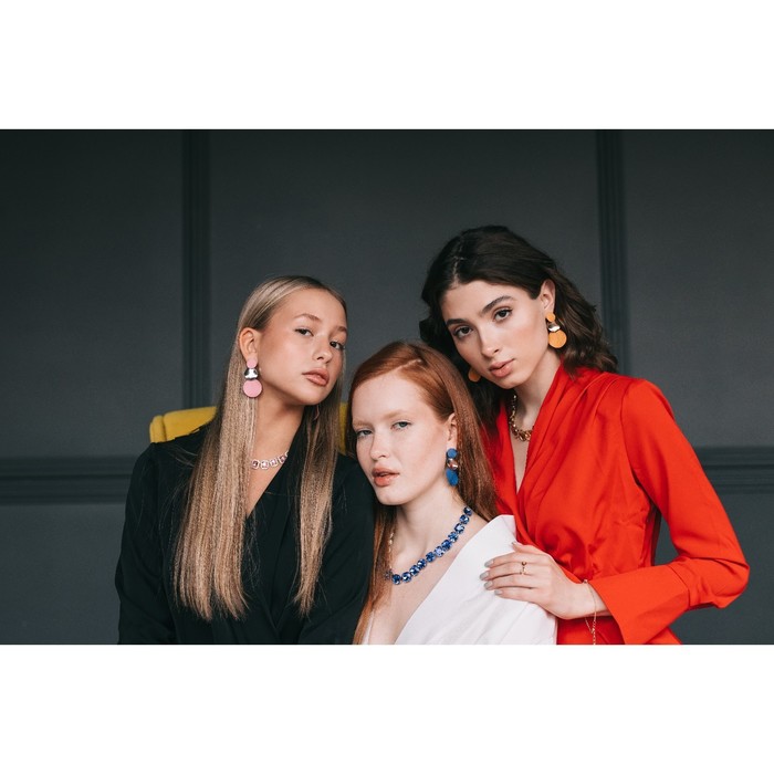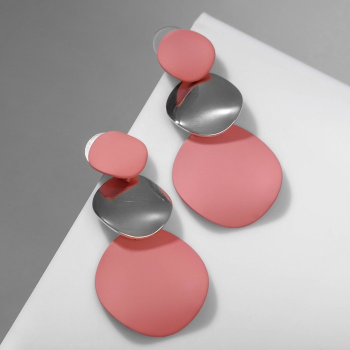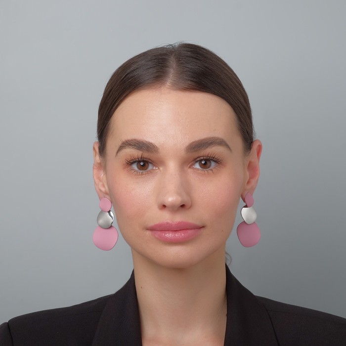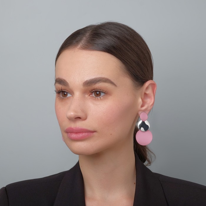 Серьги металл «Азелия» круги, трио, цвет розовый в серебре