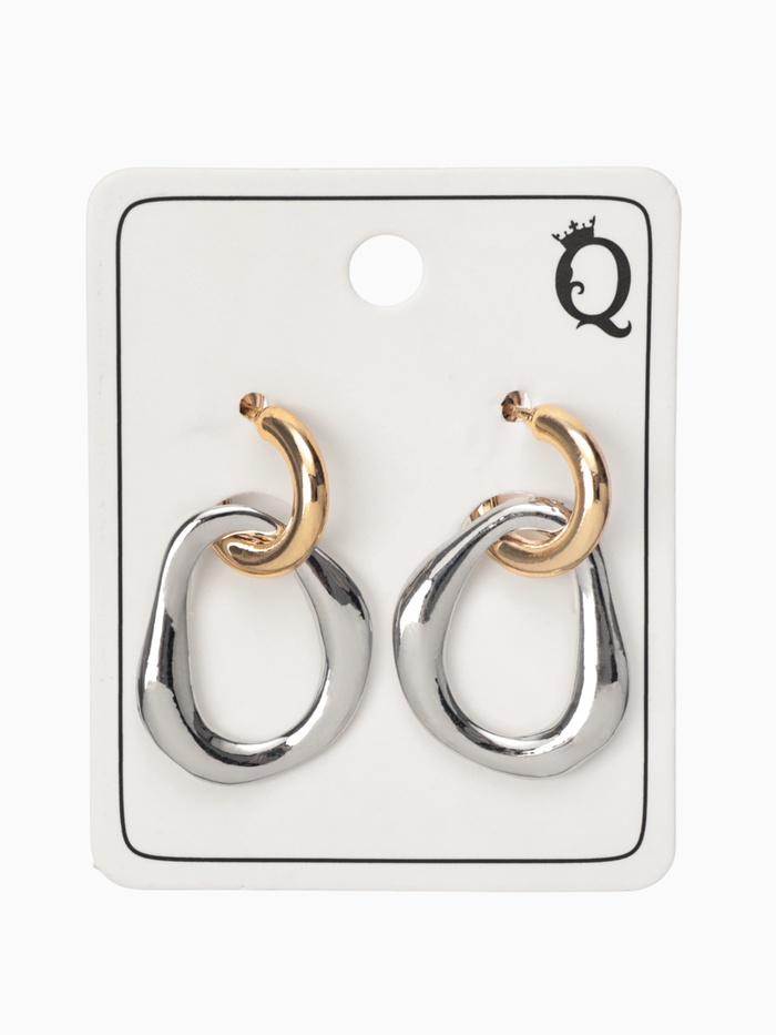 Серьги металл «Цепь» полукруг, звено, цвет золото с серебром