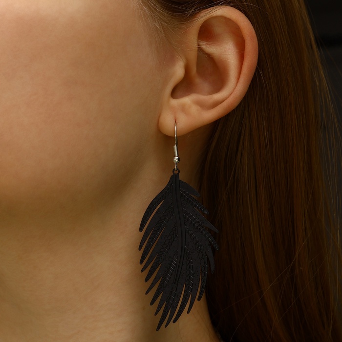Чёрные серьги в форме листочка папоротника — гармоничное сочетание природной эстетики и современного дизайна. Изготовленные из металла с чёрным покрытием, они привлекают внимание своей выразительностью и изяществом, идеально дополняя образ уверенной и стильной женщины.