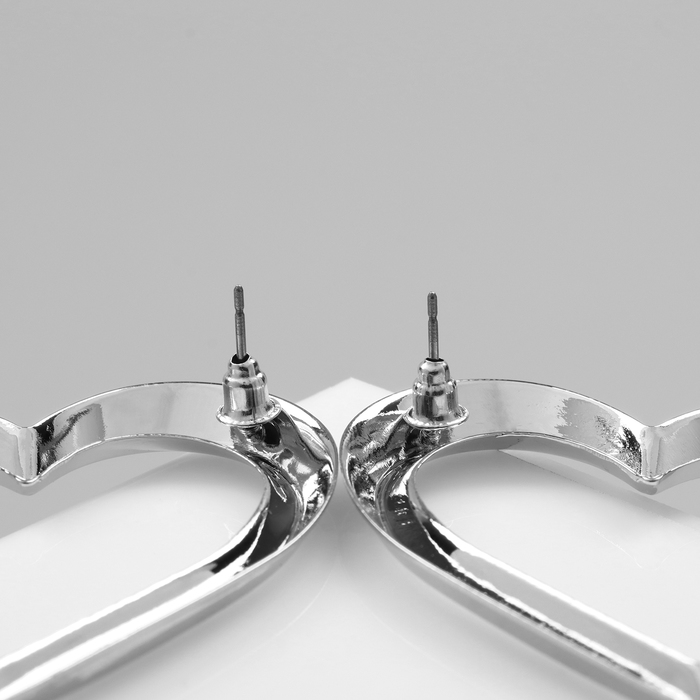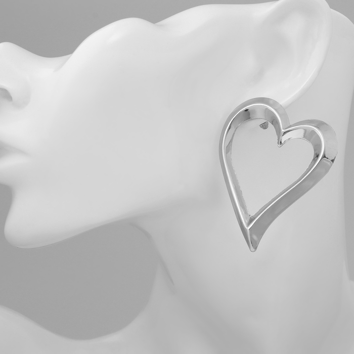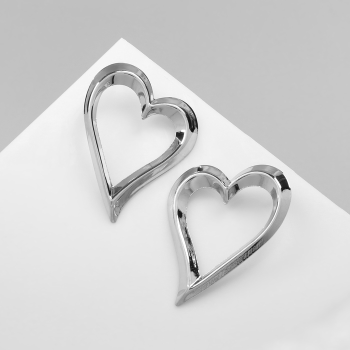 Серьги металл «Сердца» трафарет, контур, цвет серебро