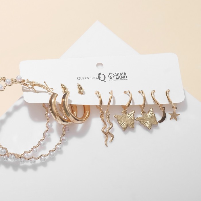 Серьги набор 5 пар «Леди» весна, цвет белый в золоте