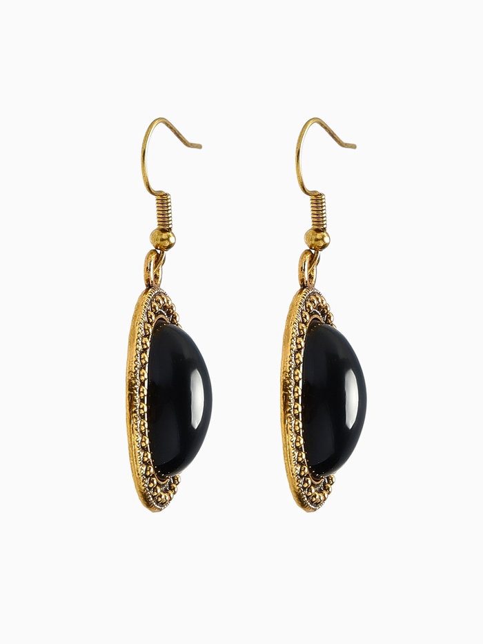 Погрузитесь в мир утончённой элегантности с этими винтажными серёжками в форме овала, которые станут изюминкой вашего образа. Их длина в 2,5 см и глубокий чёрный цвет в сочетании с чернённым золотом придают серьгам уникальный шарм и стиль, делая их идеальными для любого случая.