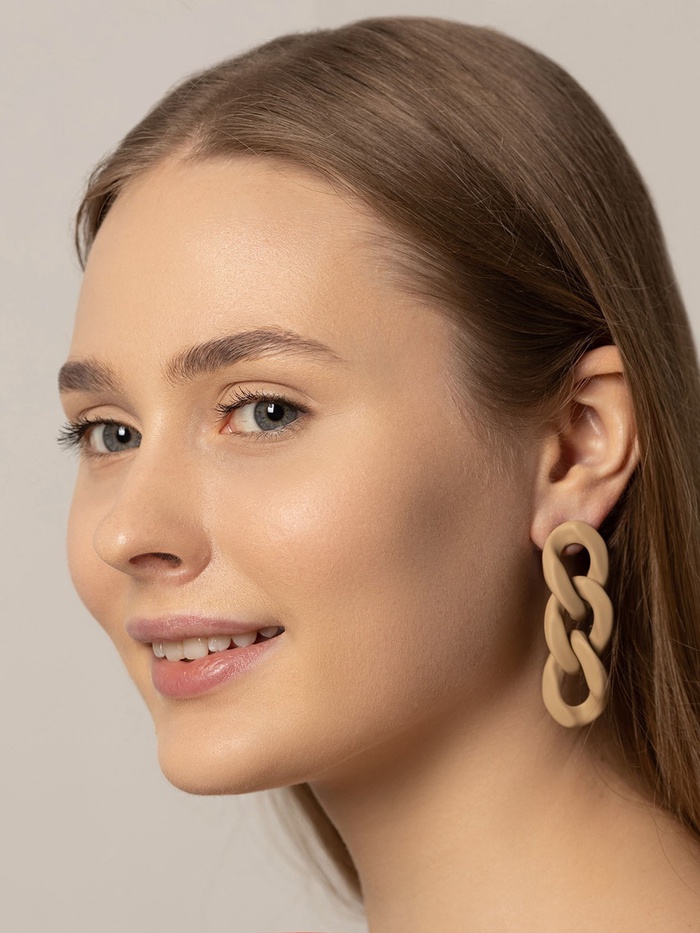 Серьги с цепочным мотивом в светло-коричневом оттенке на серебристой основе добавят в образ современный акцент и лёгкую текстуру. Длина 6 см подчёркивает элегантность и подходит для ежедневного ношения и особых случаев.