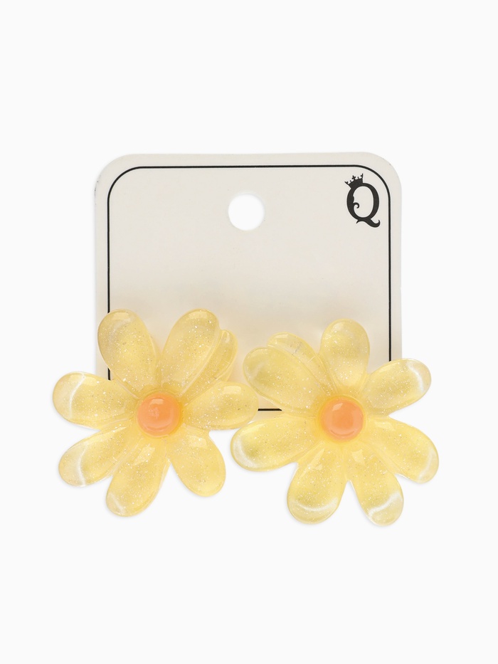 Эти яркие жёлтые серьги с цветочной тематикой — идеальный акцент для тех, кто любит в каждом образе ощущать тепло и яркость лета. Их свежий дизайн с мерцающими блёстками создаст неповторимый образ, наполненный лёгкостью и искренней радостью.