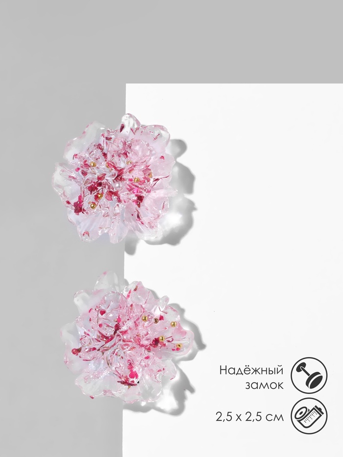 Серьги пластик «Цветы» волнистые, цвет бело-розовый