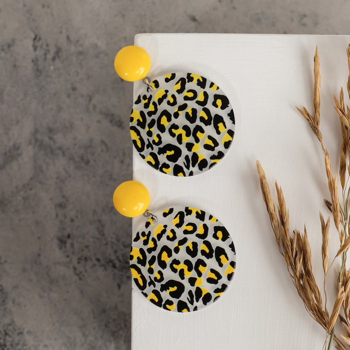 Погрузитесь в мир ярких акцентов с этими стильными серегами, которые добавят вашему образу нотку экзотики и смелости. Изготовленные из лёгкого пластика в чёрно-жёлтых тонах с эффектом гепарда, они станут настоящим украшением для каждой модницы.