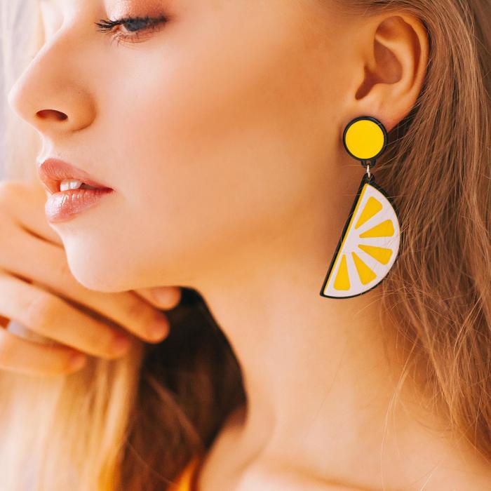 - Яркий дизайн: лимонная тематика придаёт серьгам игривый и жизнерадостный вид, идеально подходящий для весеннего и летнего сезона.