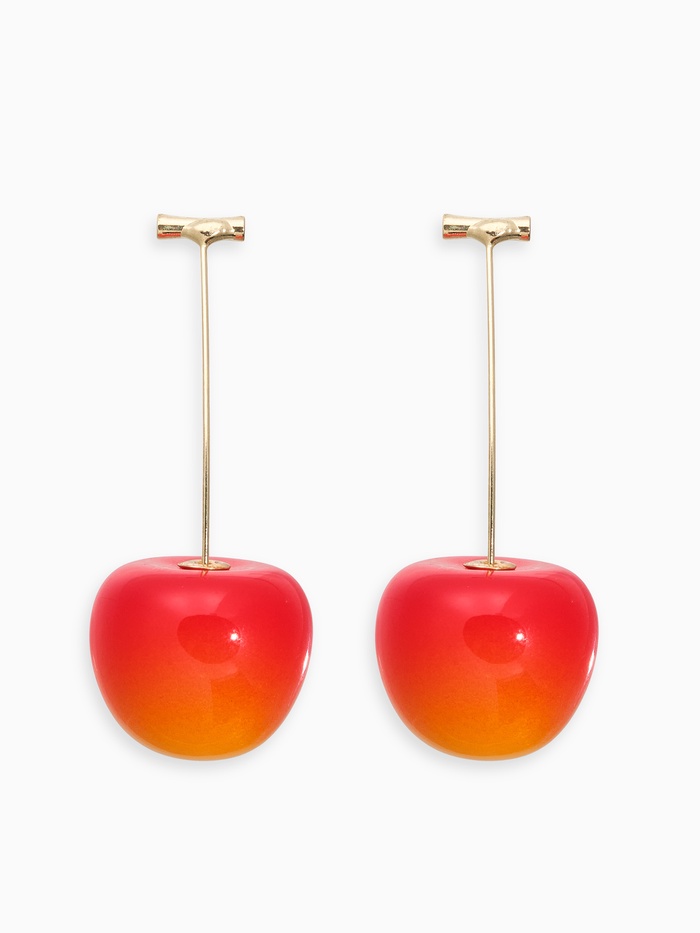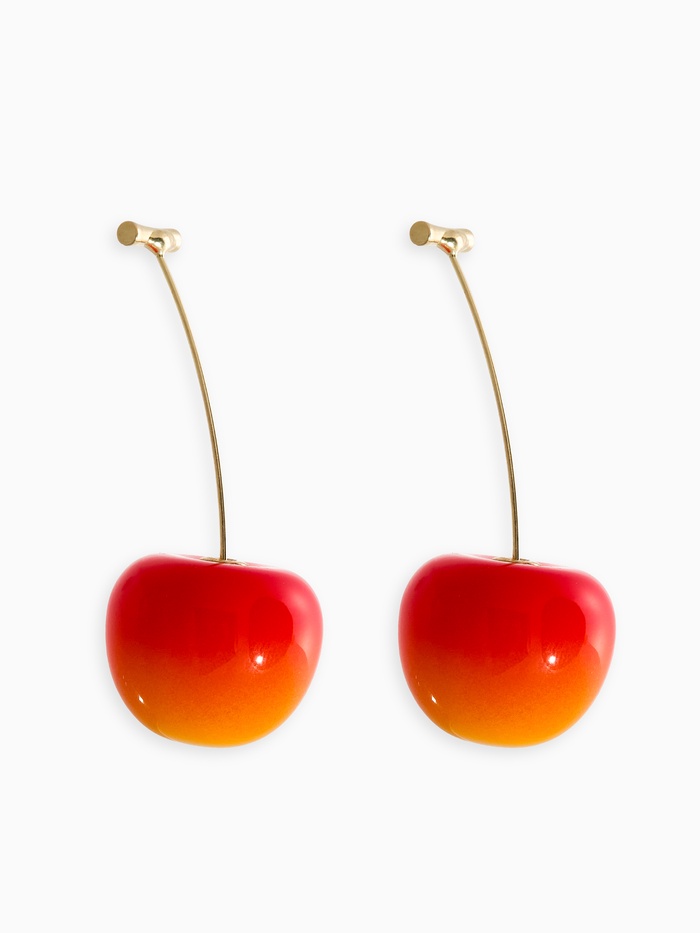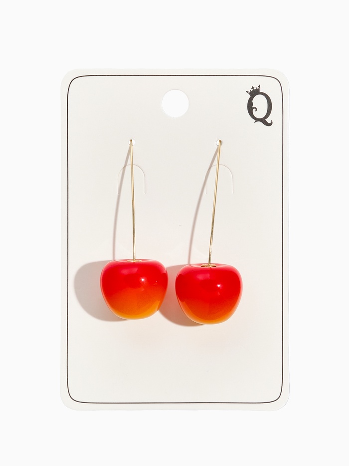 Яркие серьги с красными ягодами в золотистой оправе станут заметным акцентом в вашем образе. Длина 6,4 см подчёркивает выразительность и подходит для повседневного и праздничного ношения.