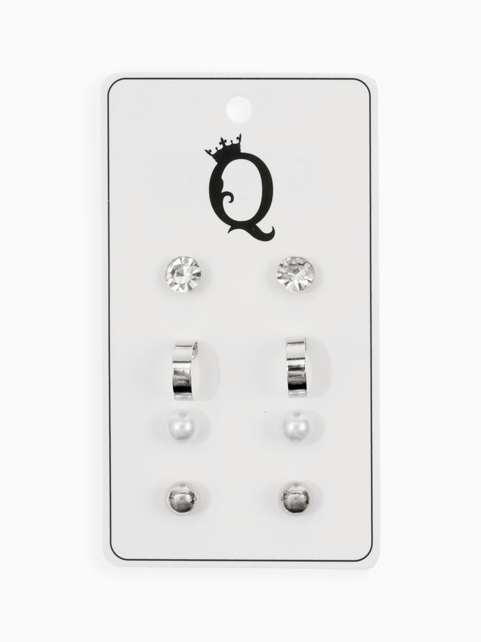 Набор из четырёх пар изящных пусет с кольцевыми элементами и белыми акцентами в серебристом исполнении — идеальное дополнение к современному образу. Миниатюрные серьги длиной всего 1 см гармонично сочетают в себе лаконичность и лёгкую игривость, подчёркивая естественную красоту и утончённый вкус.