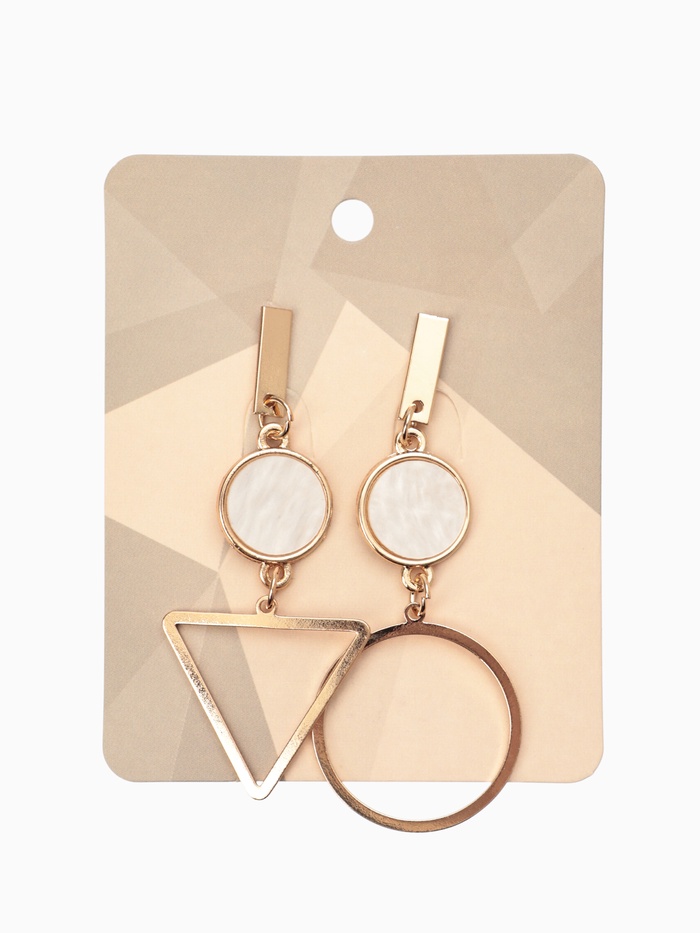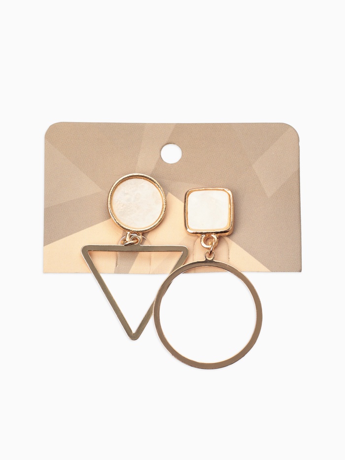 Легкость и изящество воплощены в серьгах с полым треугольным дизайном, где белый перламутр и натуральная ракушка гармонично сочетаются с золотистым металлом. Эти серьги длиной 6,3 см станут эффектным дополнением вашего образа, подчеркивая индивидуальность и современный вкус.