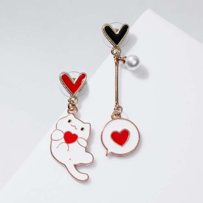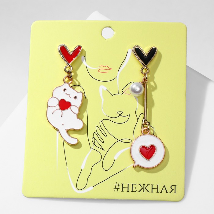 - Очаровательный дизайн: Серьги с изображением котиков и сердечек создают милый и игривый стиль, идеально подходящий для любителей животных.