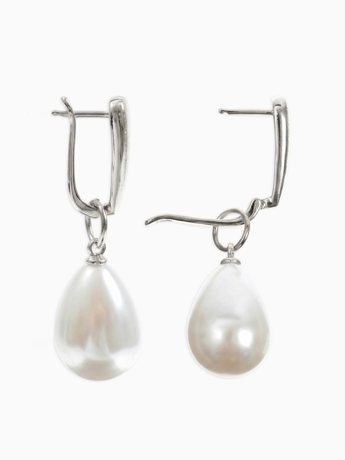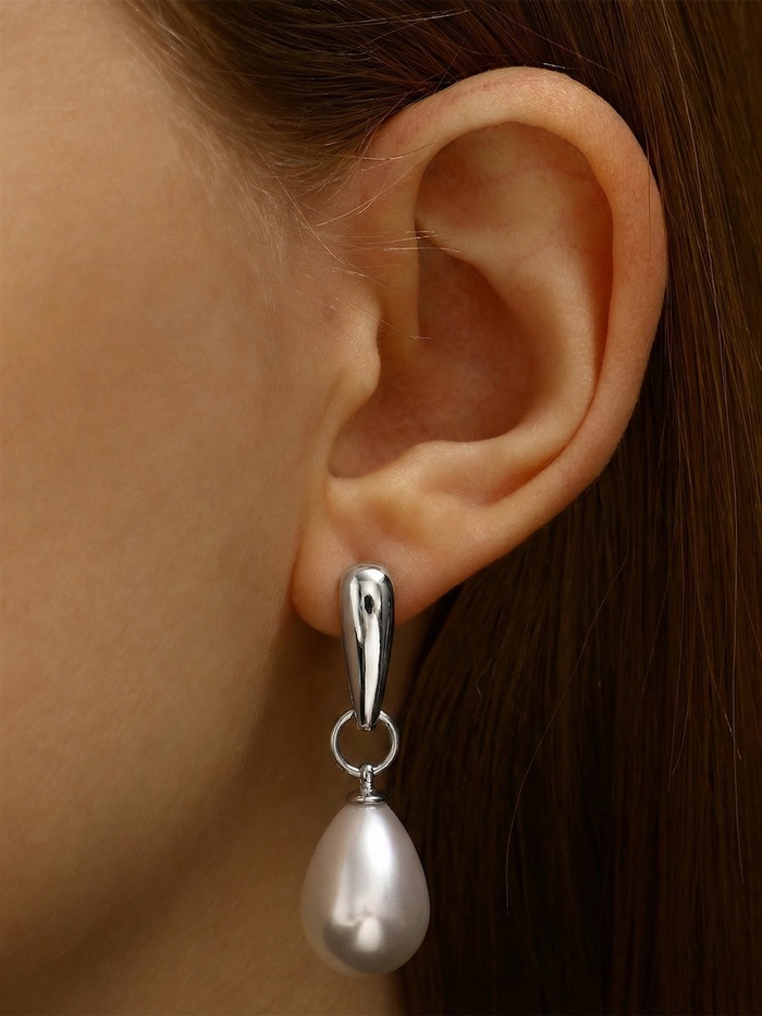 Серьги с жемчугом «Грейс», пухлая капля, белые в серебре