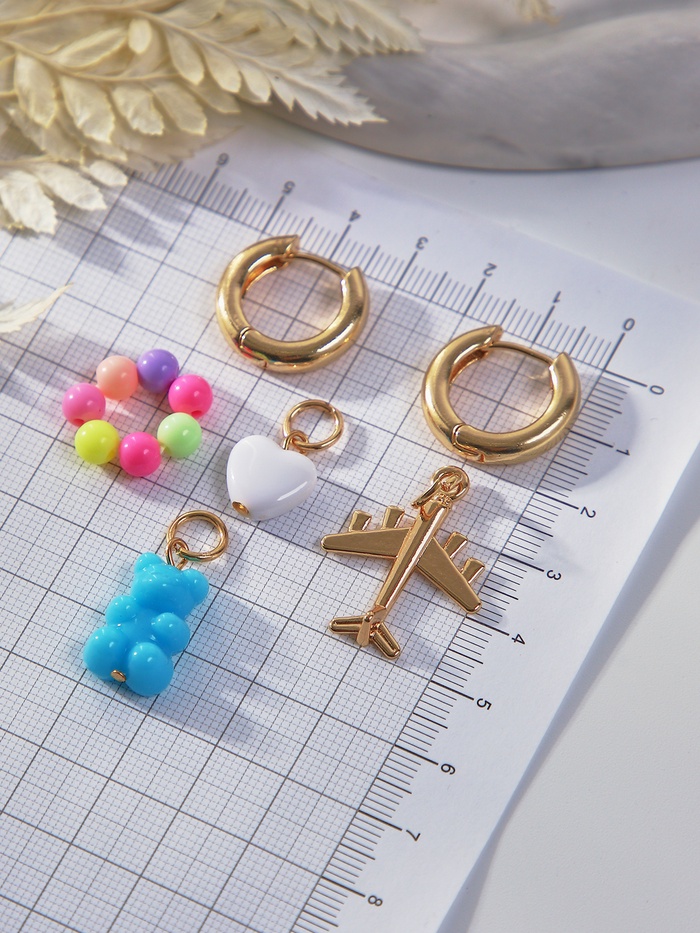 Цветные серьги с золотистым основанием и съёмными элементами в виде медвежонка и сердца представляют собой универсальное украшение для женщин, ценящих оригинальность и функциональность. Их длина 4,8 см делает аксессуар заметным, при этом лёгким и удобным в ношении благодаря застёжке-конго.