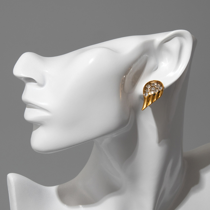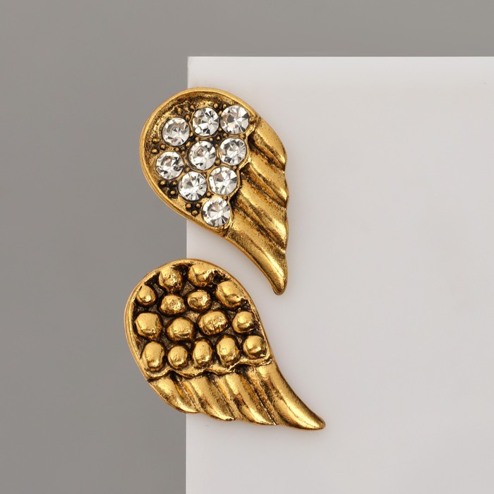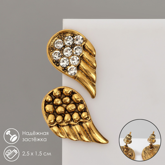 Серьги со стразами «Крылья» ангела, белые в чернёном золоте