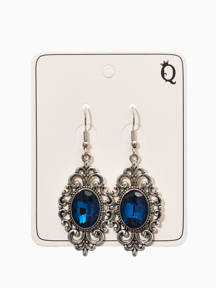 Серьги со стразми "Винтаж" овал ажурный, цвет синий в чернёном серебре