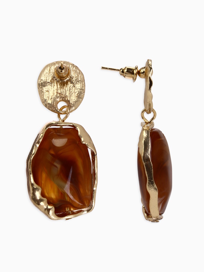 Освежите ваш стиль изысканными и богатыми деталями с эксклюзивными золотыми серьгами, украшенными насыщенно-коричневыми камнями полистоун. Гладкий, матовый камень словно отражает глубину природных ландшафтов, привнося загадочный шарм и теплоту в образ.