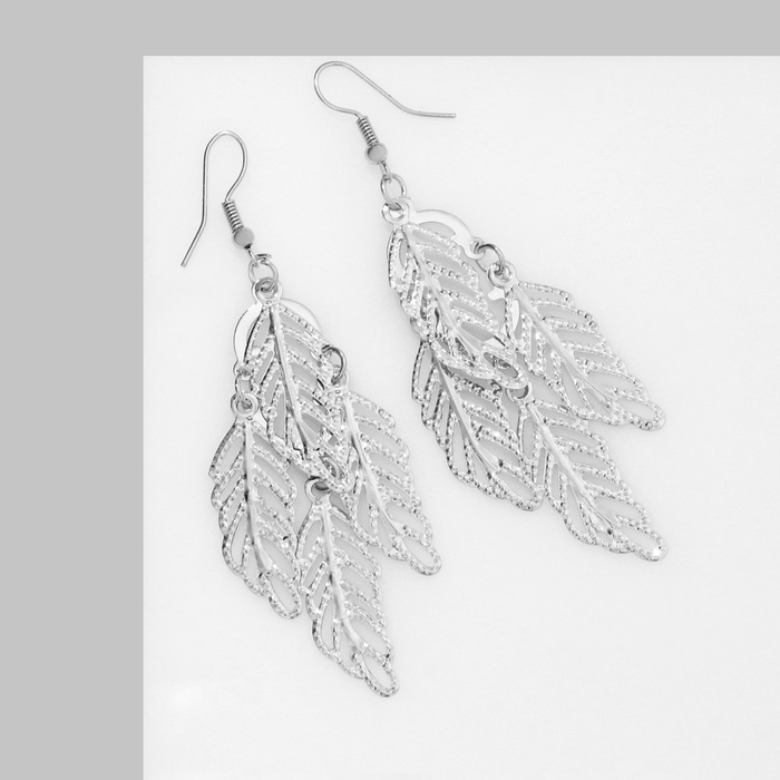 Серьги висячие «Листья», цвет серебро, 8 см