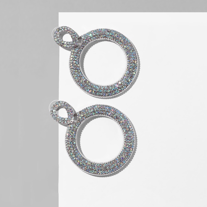 Серьги висячие со стразами «Эдем» кольцо, радужный в серебре, 6.5 см