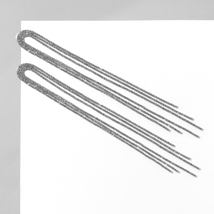 Погружайтесь в атмосферу гламура и несравненной утонченности с висячими серьгами, которые безусловно станут вашим любимым аксессуаром. Эти серьги в форме полукруга длиной 19,5 см, украшенные шестью рядами белых страз на серебристом основании, излучают блеск и элегантность, идеально подходя для любого торжества или повседневного образа.