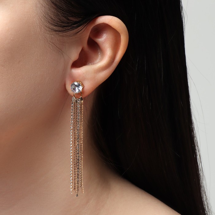 Серьги висячие со стразами «Вечерние» нить и россыпь, цвет белый в золоте, 8,5 см