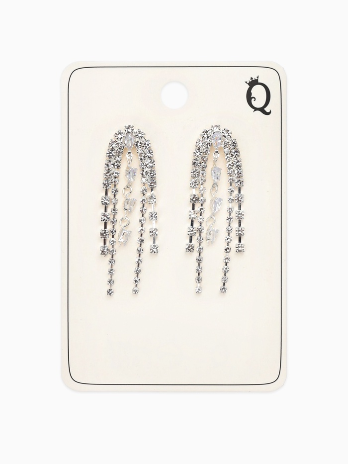 Погрузитесь в атмосферу элегантности и шика с изумительными висячими серьгами, украшенными стразами, которые напоминают сверкающий водопад. Эти изящные серьги, созданные в тонком сочетании белого цвета с серебряной фурнитурой, станут идеальным акцентом для вашего образа, придавая ему неповторимый шарм.
