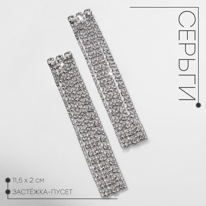- Изысканный дизайн: сочетание белых страз и серебряной фурнитуры придаёт серьгам шикарный вид, который прекрасно дополнит любой наряд.