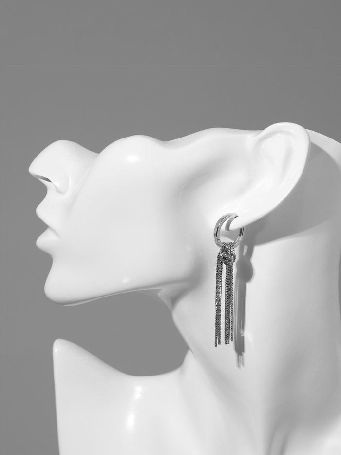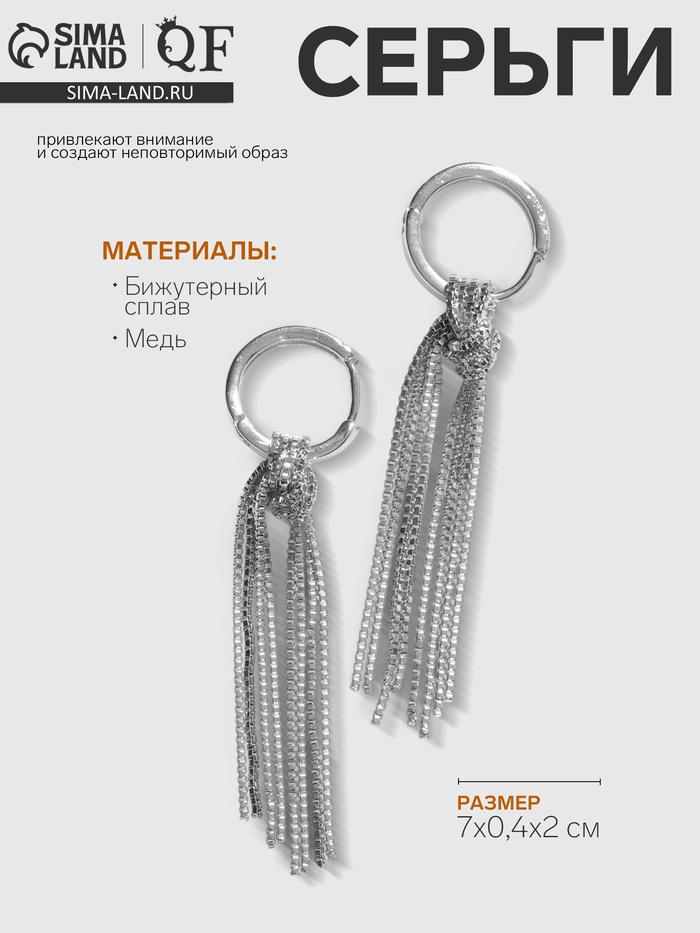 Серьги висячие «Стиль» цепи в узле, цвет серебро