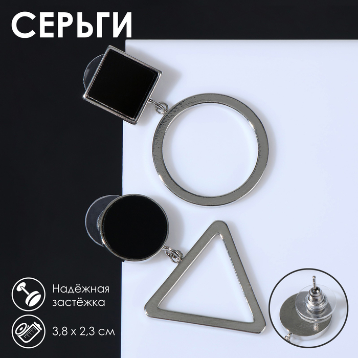 - Современный дизайн: геометрическая форма и стильный черный цвет делают серьги актуальными и модными, соответствующими трендам 2025 года.