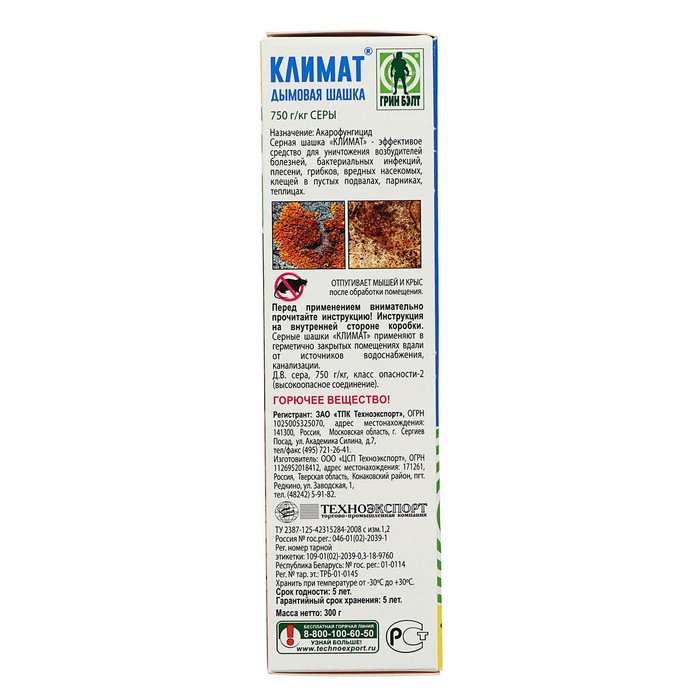 - качество. Серная шашка Климат - первая профессиональная разработка этого вида изделий, защищена патентом на изобретение.
