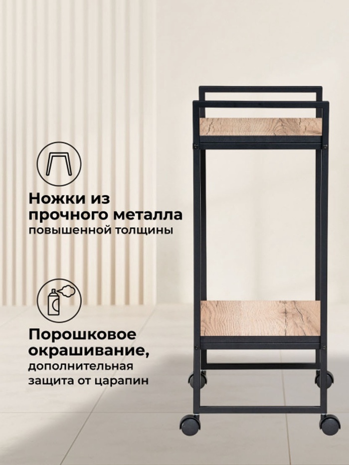Компактный и стильный сервировочный столик «Ваин» в отделке делано станет практичным дополнением любого интерьера. Он идеально подходит для размещения напитков, закусок, декора или бытовых мелочей, обеспечивая удобство и мобильность в повседневной жизни.