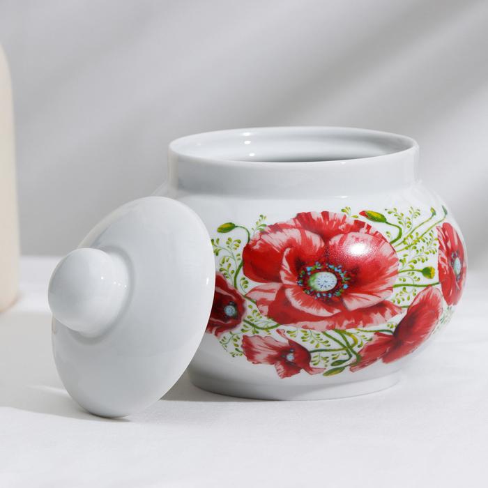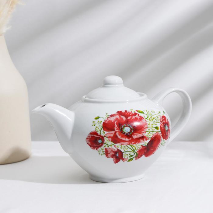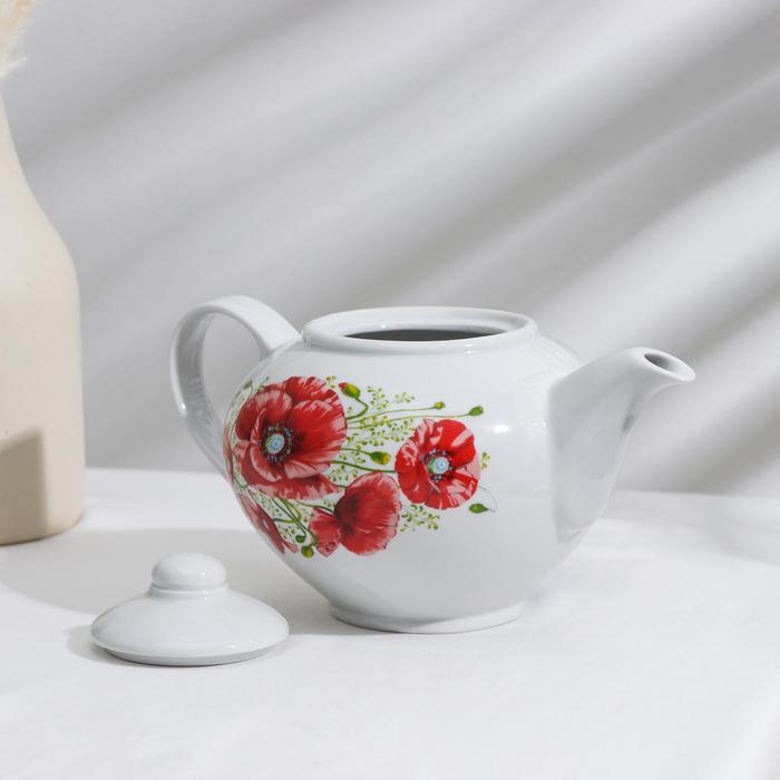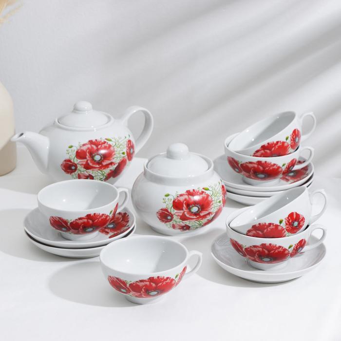 Сервиз чайный Дулевский фарфор «Дачный. Маки», 14 предметов: чашки 6 шт., блюдце 6 шт., чайник, сахарница, белый