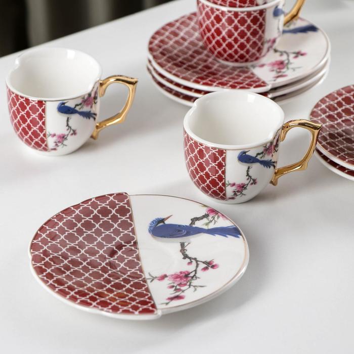 Кофейный сервиз «Дабл» изготовлен из качественного фарфора. Чашки подходят для кофе, чая, сока, лимонадов и других напитков. Фарфор не впитывает цвет напитков и не деформируется от влаги. Фарфоровые чашки долгое время будут выглядеть, как новые. Благодаря оригинальному дизайну, изделие легко украсит вашу кухню, а также прекрасно подойдёт в качестве подарка.