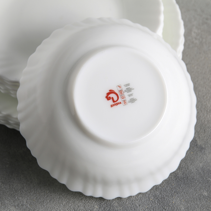 Сервиз столовый Доляна «Дива», 18 предметов: 6 тарелок d=17,5 см, d=23 см, 5×5 см, стеклокерамика, цвет белый