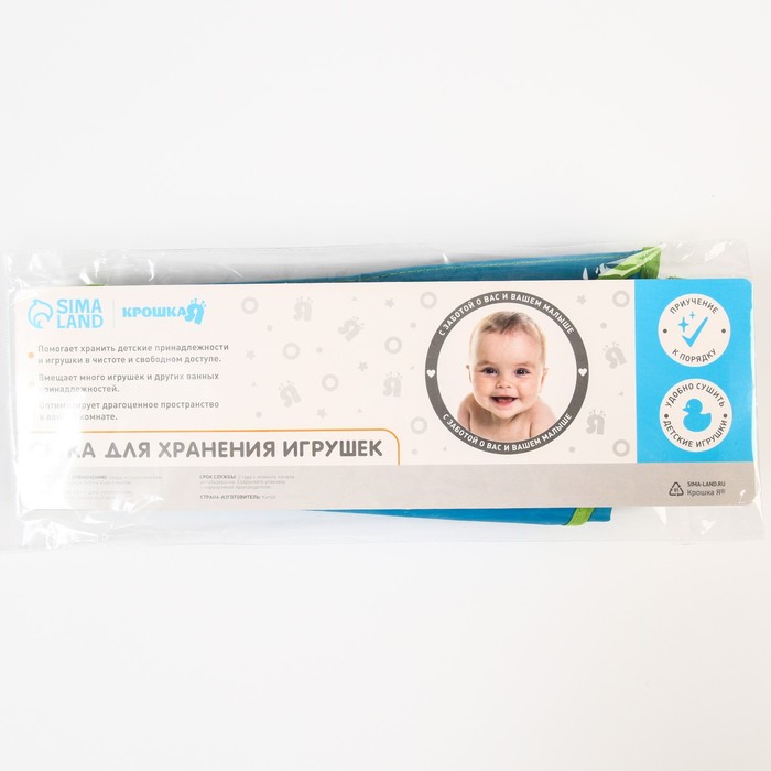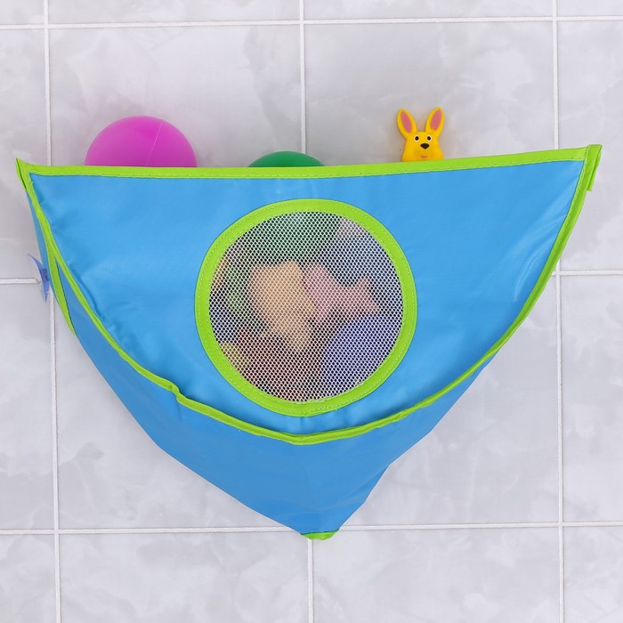 Сетка для игрушек поможет хранить детские принадлежности и игрушки в чистоте и свободном доступе. Изделие выполнено из прочного материала и крепится к стене с помощью двух присосок.