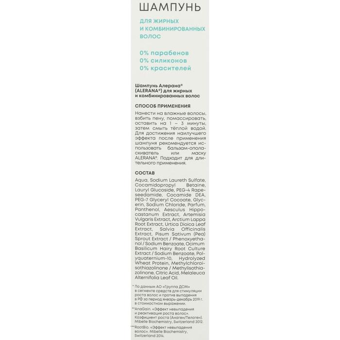 Шампунь на основе натуральных стимуляторов роста волос ALERANA разработан для бережного ухода и сбалансированного очищения жирных и комбинированных волос, имеющих склонность к выпадению.