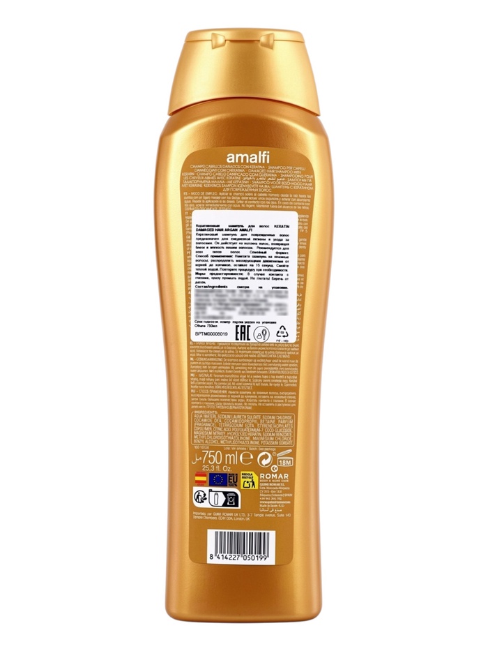 AMALFI Кератиновый шампунь "Keratin Damaged Hair Argan" 750 мл