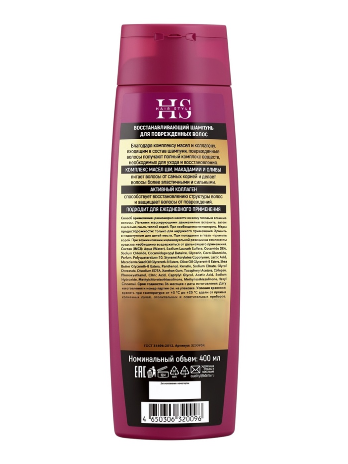 Шампунь для повреждённых волос Hair Style, восстанавливающий, 400 мл