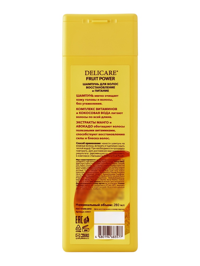 Шампунь для волос Delicare Fruit Power, восстановление и питание, с манго, 280 мл