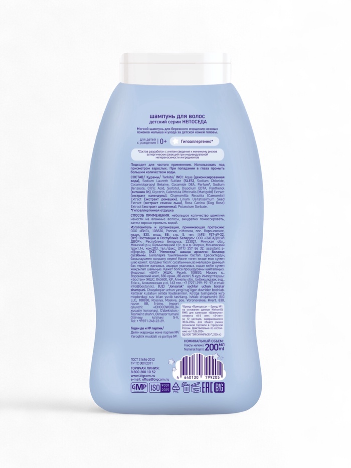 Мягкий шампунь с календулой и ромашкой Непоседа создан специально для ухода за первыми локонами и нежной кожей головы новорожденных.