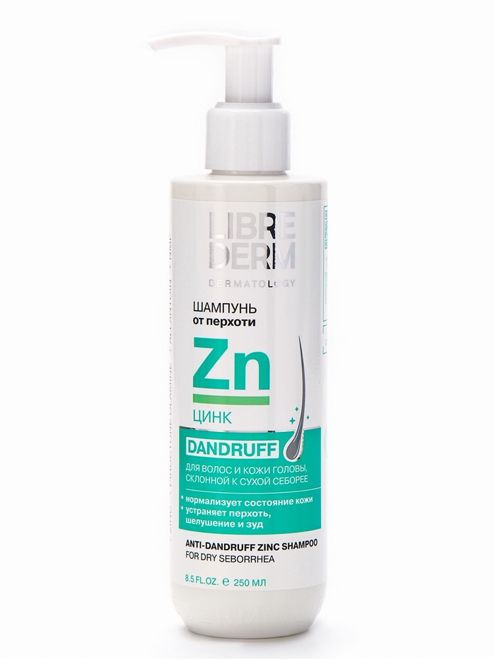 Шампунь ЦИНК предназначен от перхоти при сухой коже головы. Эффективно очищает кожу головы и волосы, отшелушивает ороговевшие чешуйки, уменьшает гиперкератоз, нормализует выработку кожного сала, способствует быстрому устранению симптомов сухой себореи, устраняет зуд и жжение, успокаивает кожу головы. Пиритион цинка оказывает противомикробное, бактериостатическое и фунгицидное действие. Д-Пантенол и аллантоин в составе оказывают увлажняющее и успокаивающее действие.