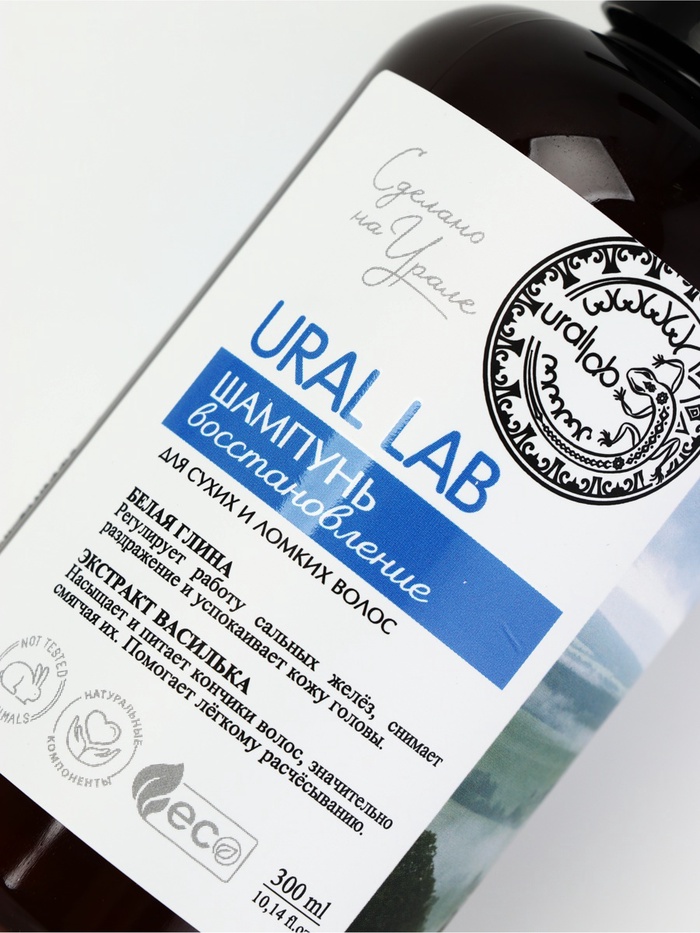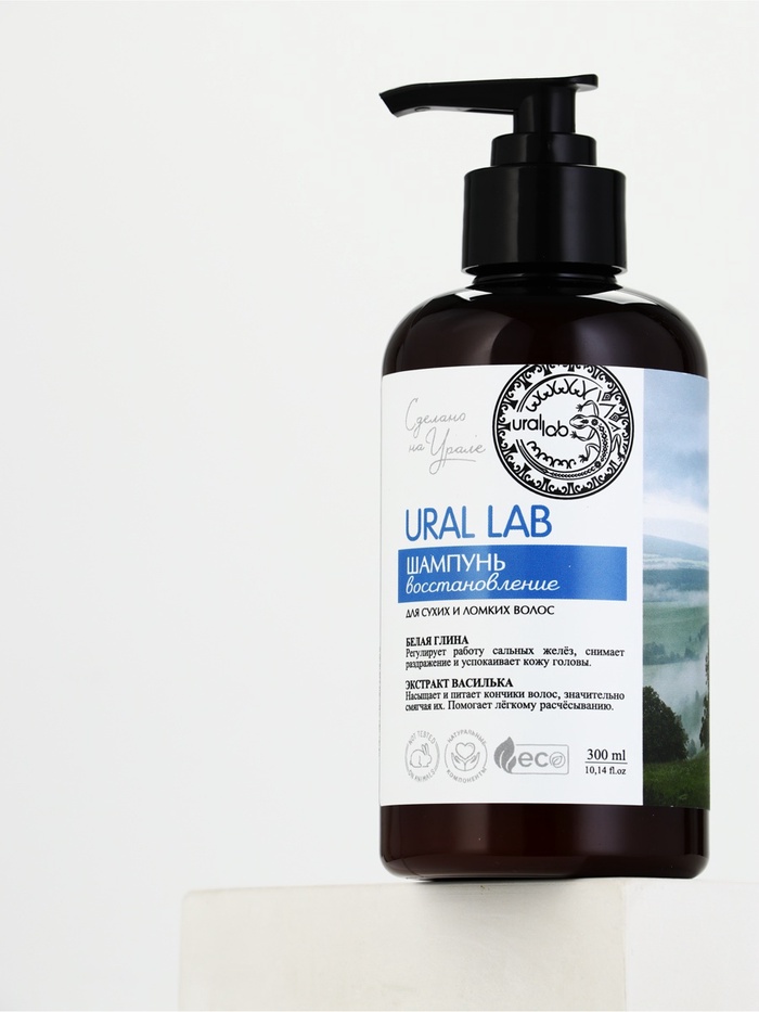 Шампунь для волос с белой глиной и экстрактом василька, восстановление, 300 мл, ECO LAB by URAL LAB