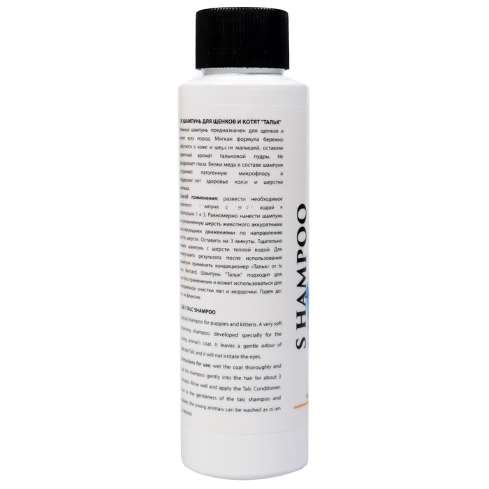 - Сухая формула на основе талька: Не требует смывания. Впитывает излишки жира у корней, устраняет запахи и придаёт шерсти ухоженный вид. Работает без воды — идеально до первого купания, после прививок или при переезде.