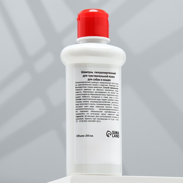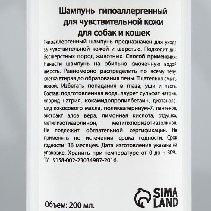 Гипоаллергенный шампунь предназначен для ухода за чувствительной кожей и шерстью. Подходит для