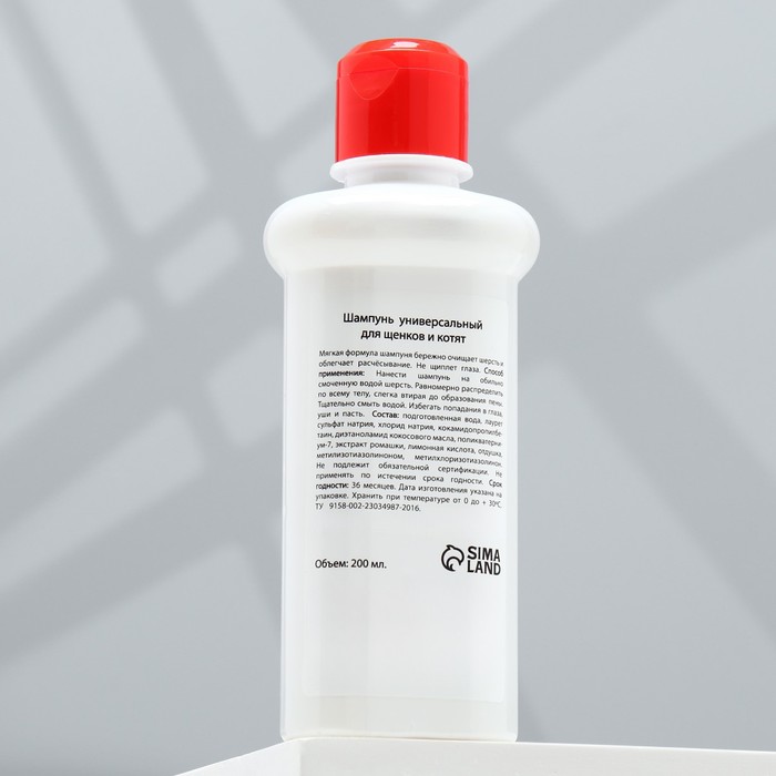 Мягкая формула шампуня бережно очищает шерсть и облегчает расчёсывание. Не щиплет глаза.