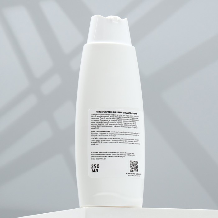 Способствует питанию и увлажнению шерсти, предотвращает спутывание. Содержание в шампуне мягких моющих компонентов на натуральной основе обеспечивает глубокое очищение шерсти, не нарушая защитные свойства кожи. рН шампуня соответствует рН кожи собаки.
