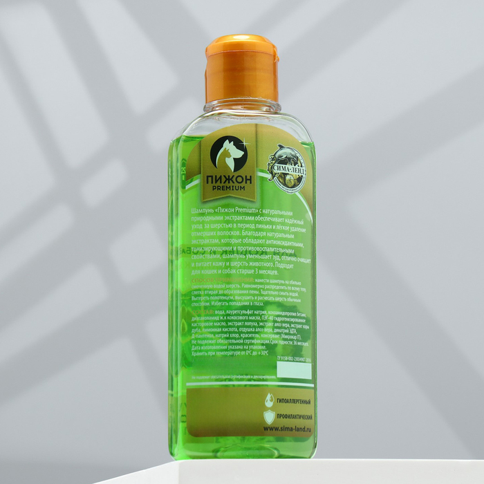 Шампунь с натуральными природными экстрактами обеспечивает надёжный уход за шерстью в период линьки и легкое удаление отмерших волосков.