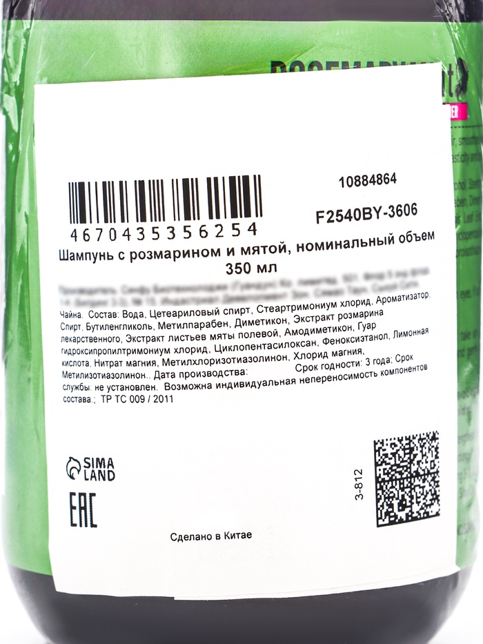 Шампунь с розмарином и мятой, 350 мл — это освежающее средство для ухода за волосами и кожей головы, созданное на основе натуральных растительных экстрактов. Его формула разработана для мягкого, но глубокого очищения, восстановления природного баланса кожи головы и придания волосам лёгкости, свежести и здорового блеска. Аромат розмарина и мяты пробуждает, тонизирует и наполняет энергией, превращая каждое мытьё головы в приятный уходовый ритуал.