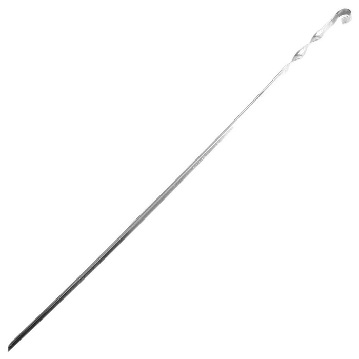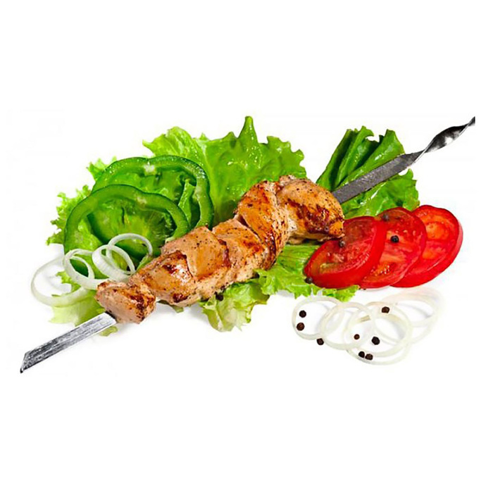 Шашлыки на шампурах — классическое и любимое угощение во время отдыха на природе. Стальная модель с никелевым покрытием не нагревается, устойчива к воздействию кислот и солей. Угловой шампур с витой ручкой держится в нужном положении, что позволяет правильно переворачивать и равномерно прожарить мясо.